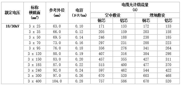6~35kV交聯聚乙烯絕緣電力電纜,主要技術參數如下: